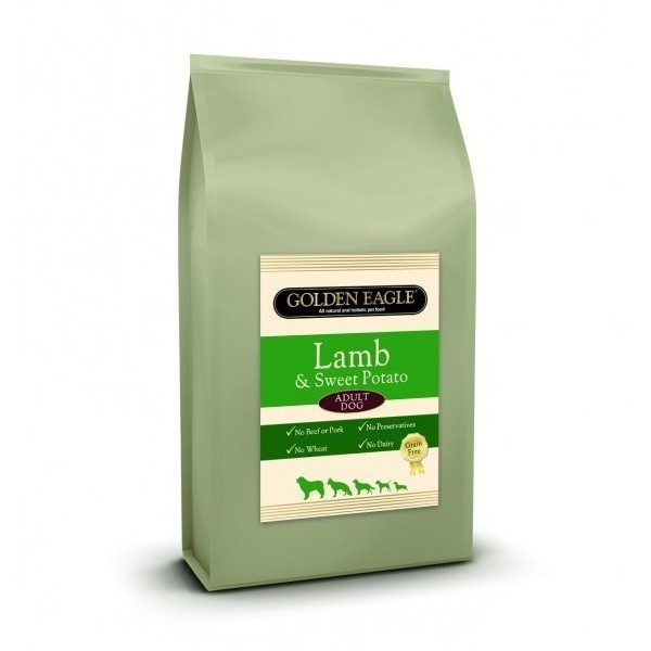 Golden Eagle Lamb & Sweet potato on teraviljavaba, hüpoallergeenne koeratoit täiskasvanud koertele. Sisaldab 50% maitsvat lambaliha. Lisaks suurepärastele valkudele sisaldab lammas rasvu, mis on kasulikud koera nahale ja karvale.