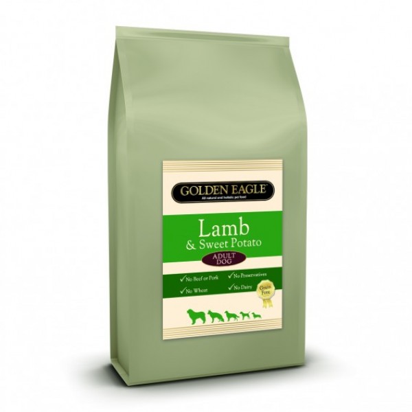 Golden Eagle Lamb & Sweet potato on teraviljavaba, hüpoallergeenne koeratoit täiskasvanud koertele. Sisaldab 50% maitsvat lambaliha. Lisaks suurepärastele valkudele sisaldab lammas rasvu, mis on kasulikud koera nahale ja karvale.